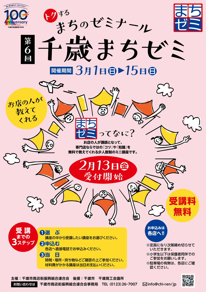 千歳市商店街振興組合連合会は、第6回千歳まちゼミ「トクするまちのゼミナール」を本年度開催することを決定しました。開催店舗並びに受付方法に関しては2月中旬に発表致します。